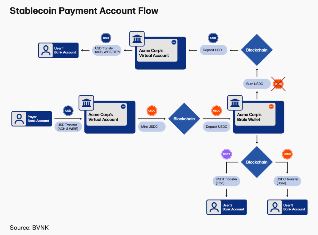 Enterprise stablecoin payment flow for cross-border settlement (Source: BVNK)