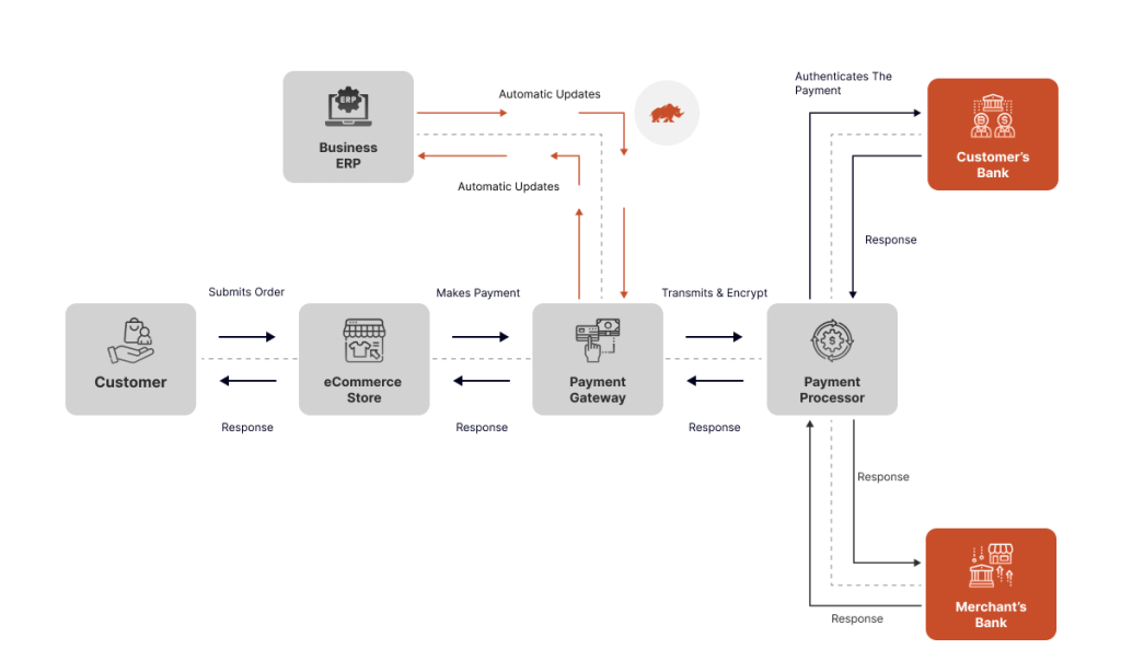 ERP-driven payment flow with settlement and banking integration (source: dckap)