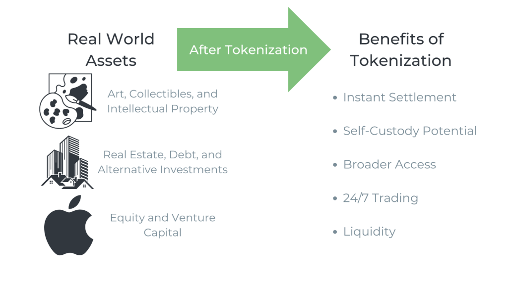 - Benefits: Liquidity in private markets, fractional participation, and faster fundraising cycles.