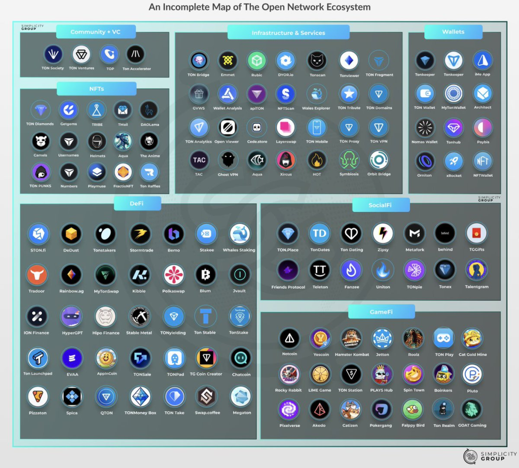 TON ecosystem map showing major dApps sectors (Source: Simplicity Group)