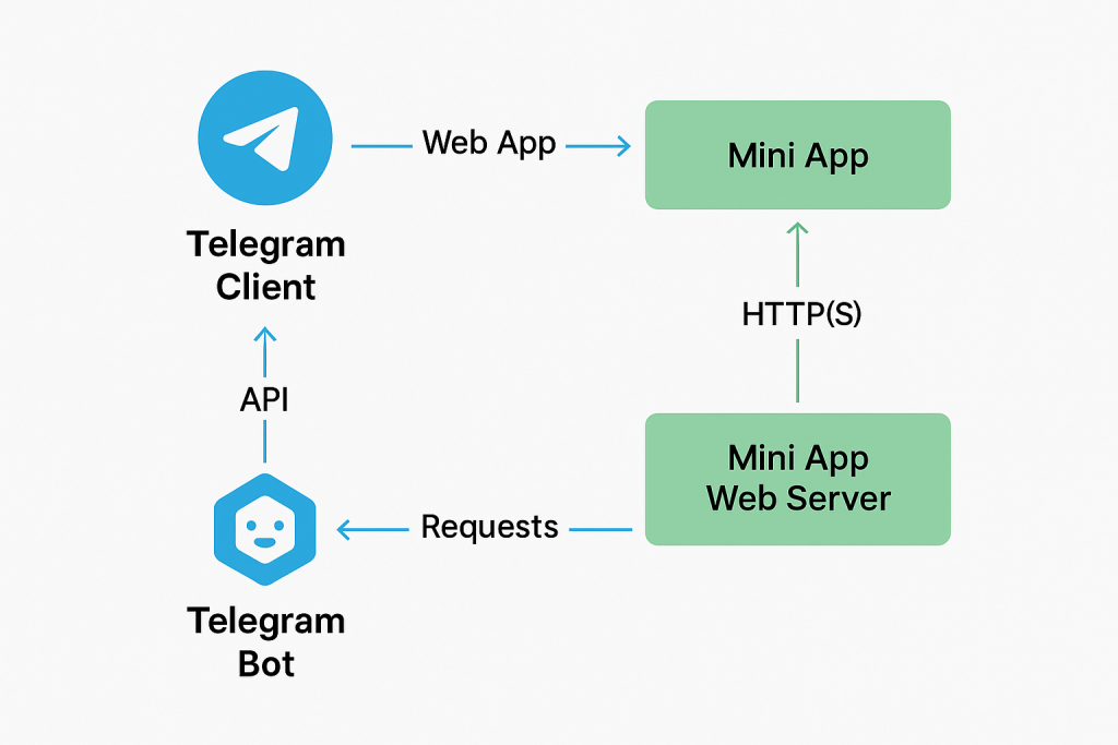 - No installation required: Users can open a miniapp directly in Telegram without app store downloads or extensions. It’s as simple as clicking a link or typing a bot command in a chat.